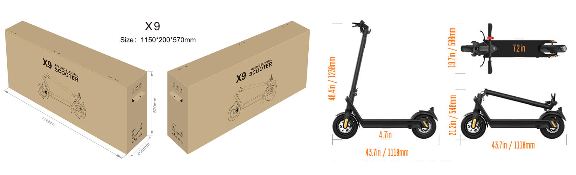 Powerful Motor – 36V 500W X9 Plus scooter / 48V 550W X9 Max Scooter, Peak power 850W/1100W