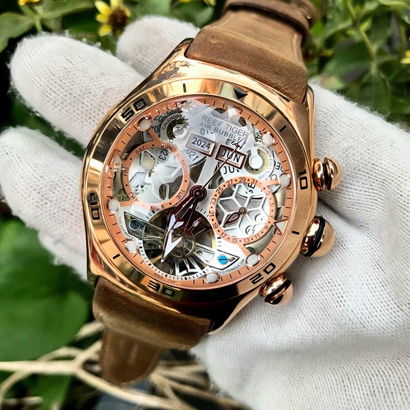 REEF TIGER/Reef Tiger men's mechanical hollow watch three-needle RGA703-air bubble