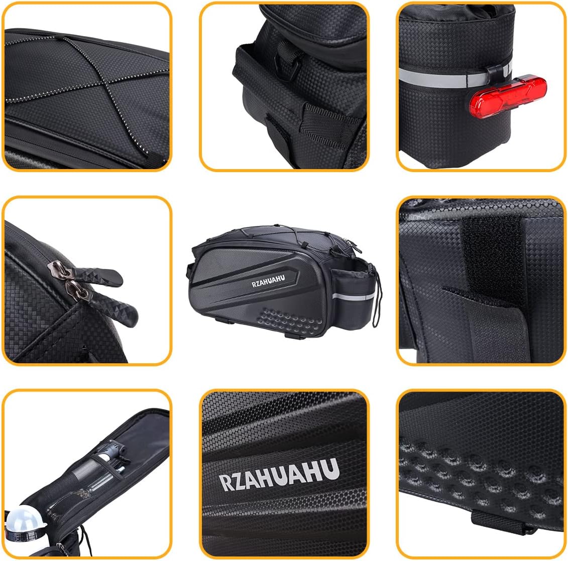 DetailMULTIFUNCTIONAL BIKE ACCESSORY - You can use it as a shoulder bag or handbag depending on the occasion. When off the road, you can use it at work or school. This bike travel bag comes with handles and an adjustable shoulder strap. The pannier bag on the frame can be used not only for cycling, but also as a handbag, hiking bag and shoulder bag for travel, camping, picnics, skiing and other occasions