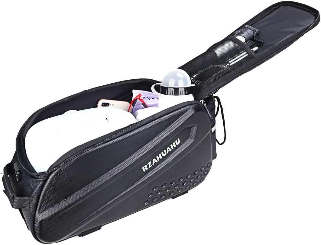 - TOOL-FREE INSTALLATION - This bike pillion bag comes with 3 adjustable Velcro straps that can be easily installed and removed in seconds, ensuring maximum stability and security of the bag. This bag is not easy to move, shift or move around and helps you to tie down and not get caught in the wheels. Suitable for most bike frames such as mountain bikes, road bikes and electric bikes